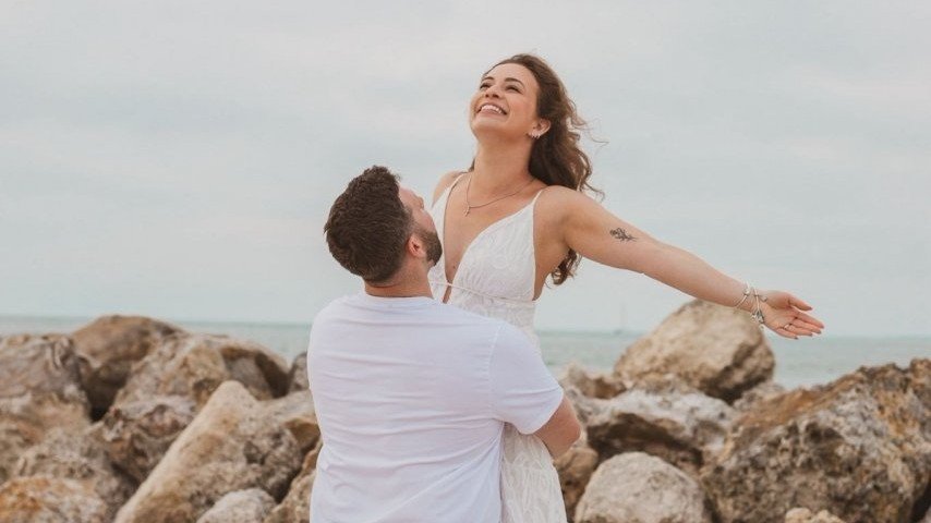 Desde o primeiro encontro (que envolveu fliperama, cerveja e muita conversa boa), a gente teve aquela sensação estranha de “pera… a gente já se conhece, né?”. Eu (Gabi) tive certeza absoluta naquele dia: vou me casar com esse homem! (e posso provar, viu? Hahaha). E tenho quase certeza de que ele pensou a mesma coisa — ou pelo menos foi convencido rapidinho.